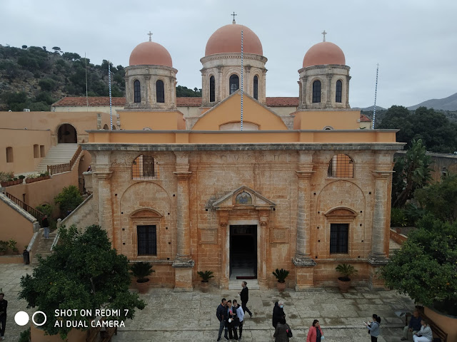 El medio día es nuboso y ventoso a la vez y fresco. Comprobamos la parada de taxis, de autobuses y la parada del barco que une diversas localidades costeras, y da salida a Samaria. Es una costa abrupta llena de roquedos como la mayor parte de las costa cretenses.